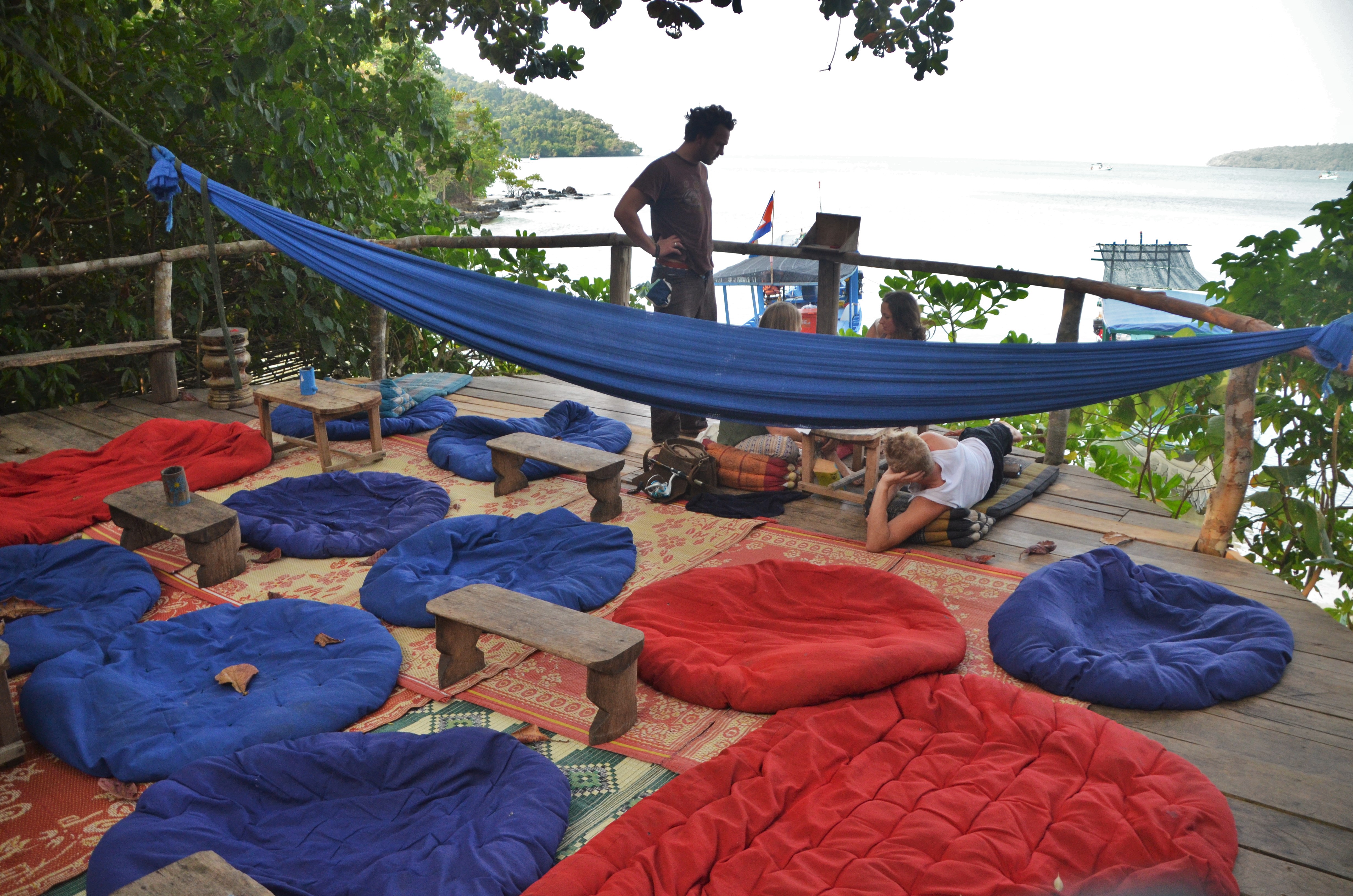 We had one evening in Sihanoukville before heading out to the island of Koh Ta Kiev. We spend three beautiful days on the island. Our room was 3 walls with a roof and the open wall facing the ocean. The edge of my bed was about 15 feet from the water’s edge with a view I wouldn’t mind waking up to for the rest of my life. It was very minimalistic, unique, and a perfect get-a-way. There was electricity only from 6-10pm and showers, well I wouldn’t really call them showers. The “showers” consisted of a large trash can filled with slightly dingy well water and a pot to dump it on yourself. Needless to say, I didn’t have my two showers a day that I am use to, but it’s all part of the island life.