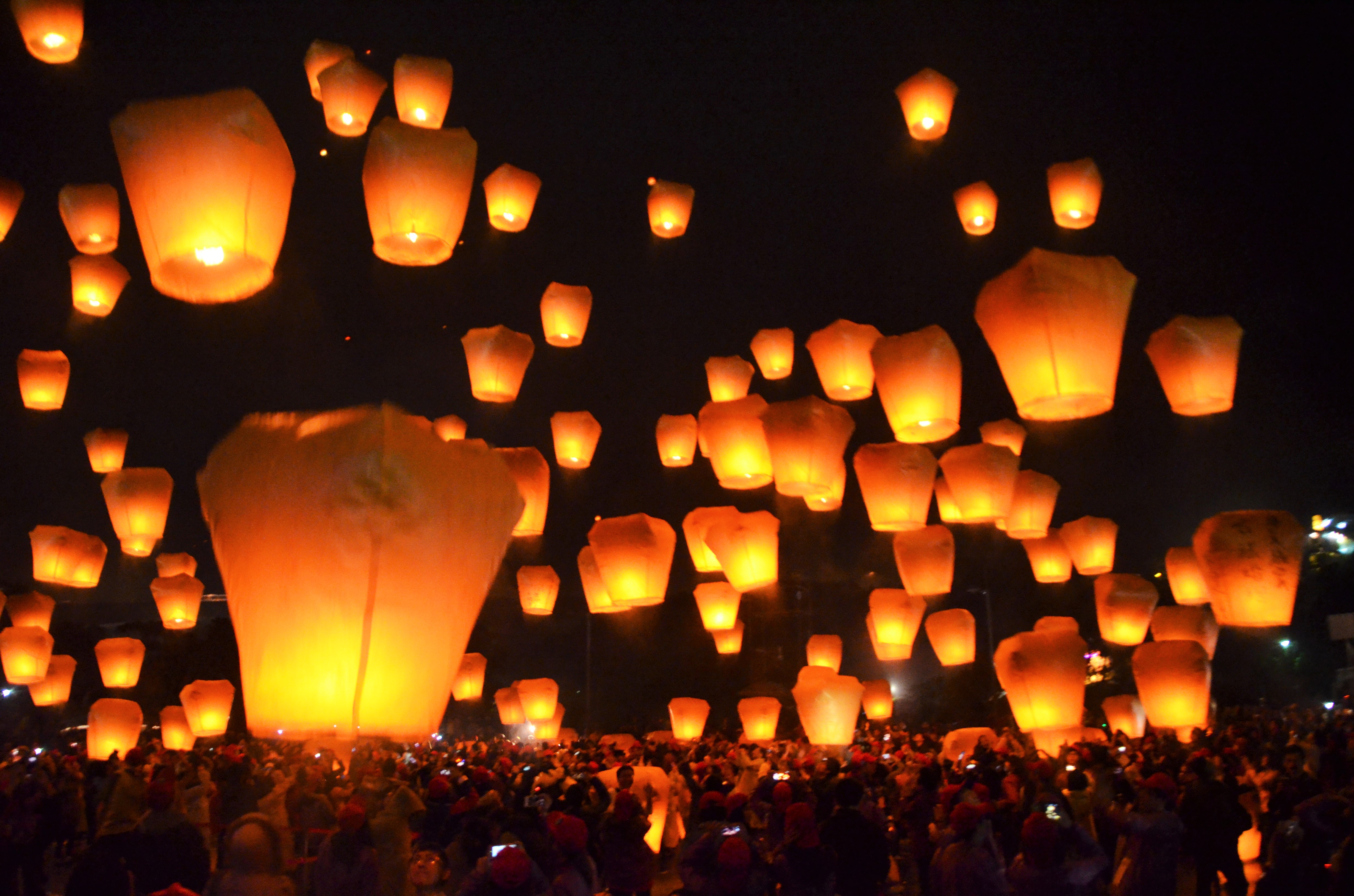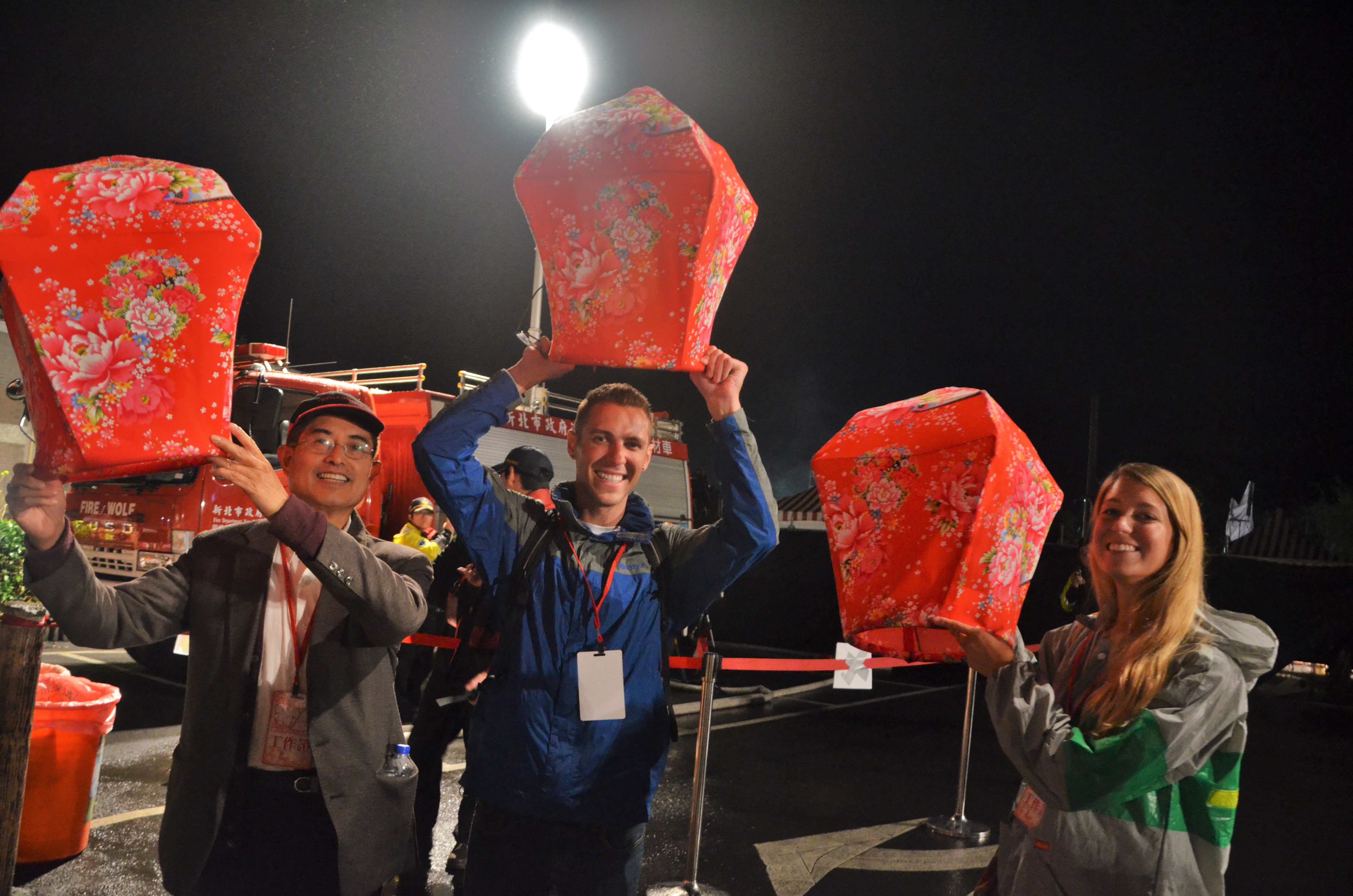 As we worked our way farther through the festival, we visited a very impressive waterfall at the end of the celebration area. Following the waterfall, we headed back to the main square of the lantern festival. A large stage, news crews, and people lined a large square where the lantern releases would happen. The event consisted of 10 lantern releases of 200 lanterns at a time with live performances on stage in between the releases. Paul was a performer between the second and third release and somehow scored us all VIP back stage passes. Before all the main events started happening, we all headed back stage with all the performers for dinner. Not only were we VIP, we even got fed! While Paul was getting ready for his performance, his two friends invited us to join them for the 2nd lantern release of the night. We were dead center in a sea of lanterns illuminating the festival grounds as we all released them simultaneously. It was absolutely magical to watch the sky glow with lanterns as everyone’s New Year’s wishes drifted up into the nights sky. Not even 24 hours into Taiwan and we already had one of the most beautiful experiences of our lives.