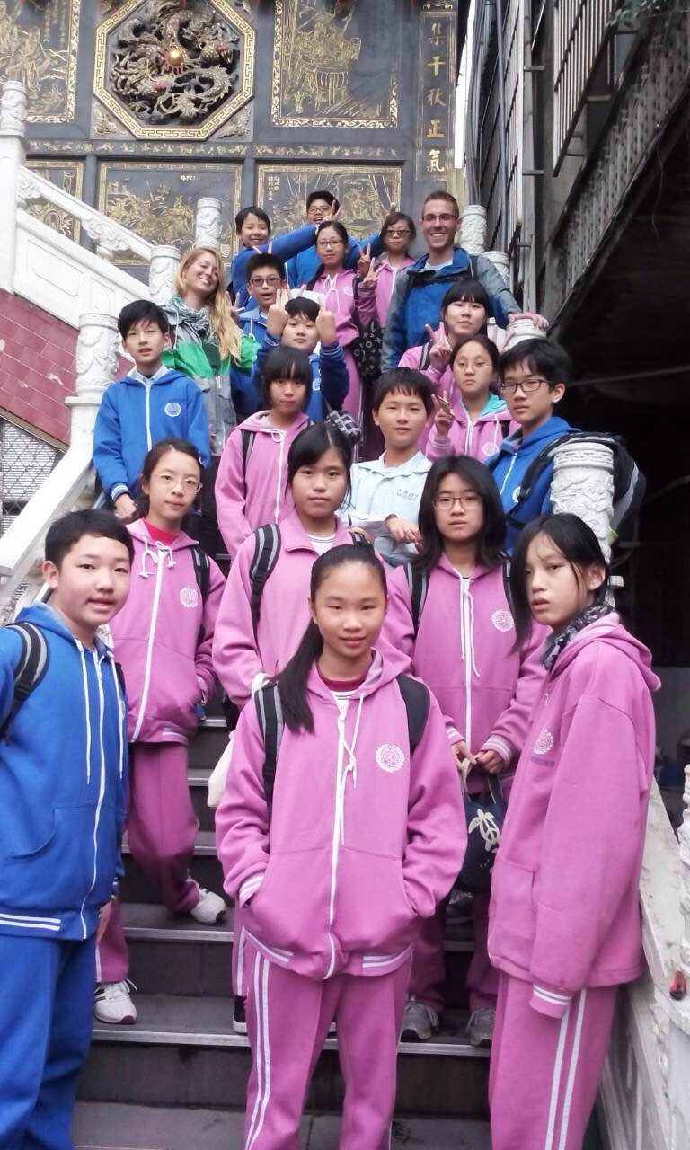 After visiting the Taipei 101 we meet up with Paul again. We got to join a 7th grade field trip that he led around town (Note the little guy between Marge and I giving the “double bird” in the picture above). We visited a temple, a Japanese style building, and ended at a local market before parting ways with the kids. Following the field trip, Paul took us up the Mekong Mountain where we met one of his friends that runs a tea pot museum. Paul took us through the impressive collection of tea pots before we sat down to try some local tea with his friend. After tea time, we headed to dinner overlooking the city from the side of the mountain. It was one of the best meals of the trip and everything had some type of tea ingredient. Shrimp, noodles, mushroom soup, rice, chicken, greens, and several things I had no clue what they were, but they were delicious! After dinner we took the 3kilometer gondola through several misty mountain peaks and back to the city before parting ways. Paul had yet again impressed us. When he invited us to a dinner with some of his former students the following night, we again couldn’t resist!