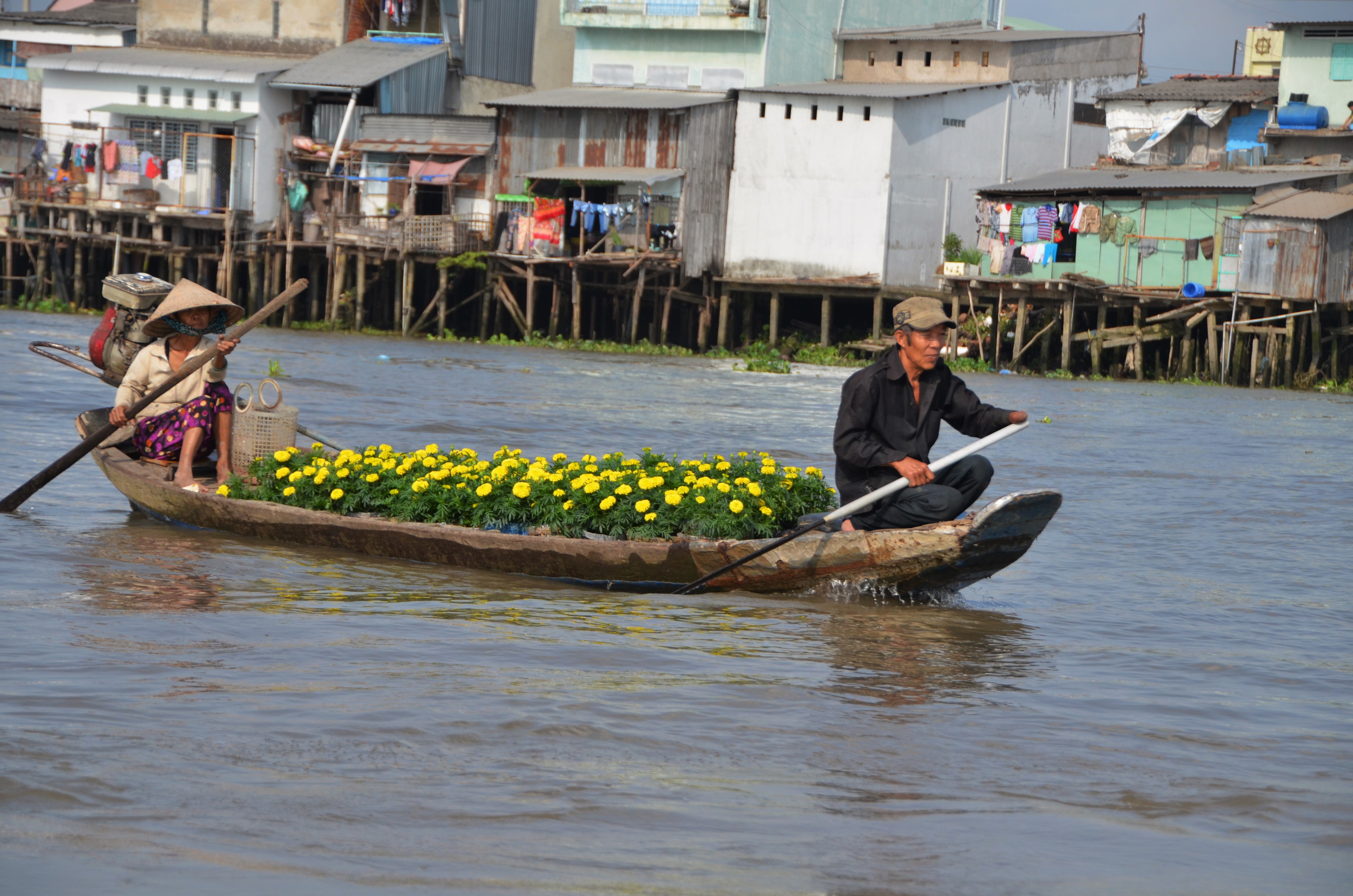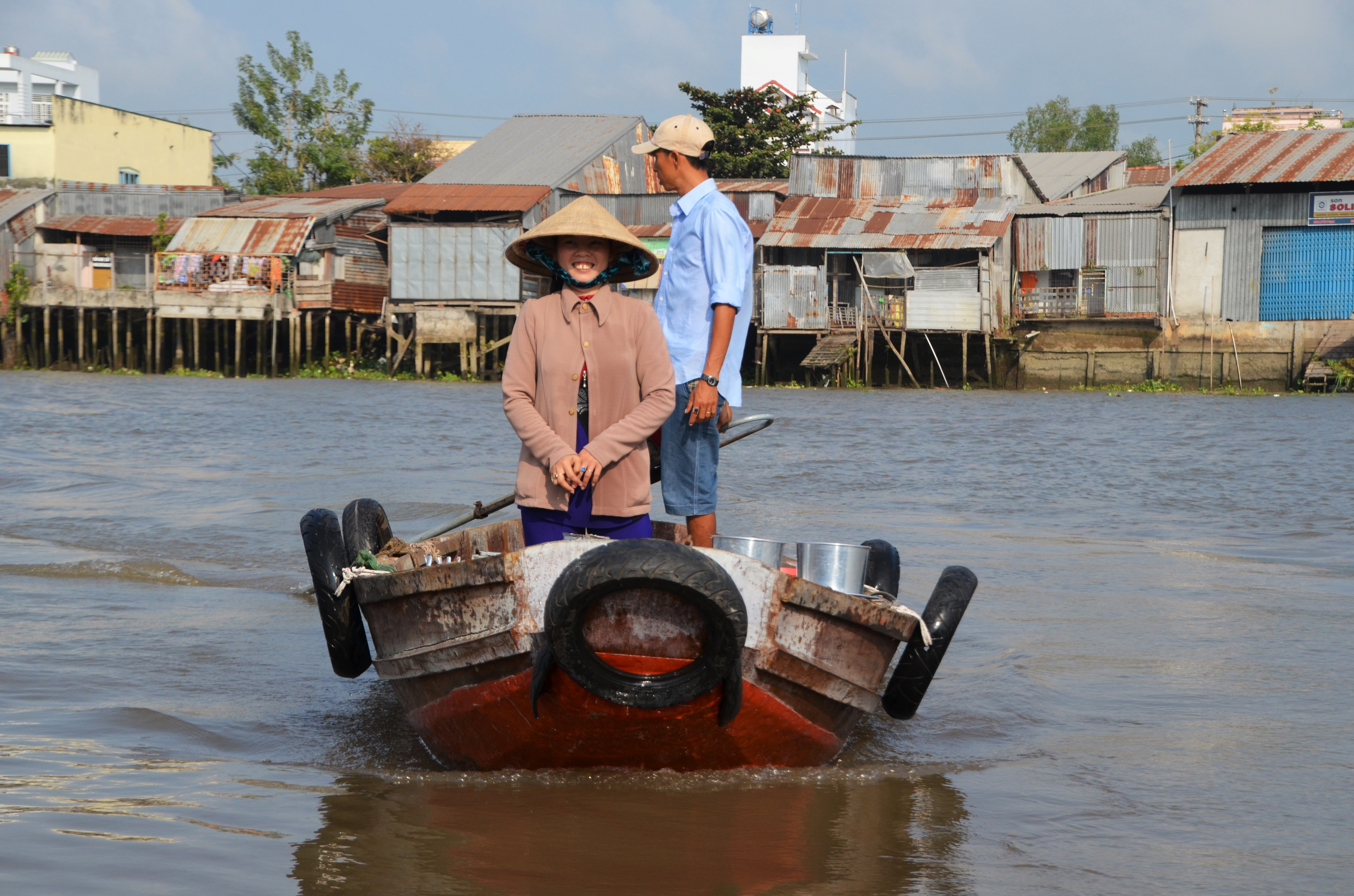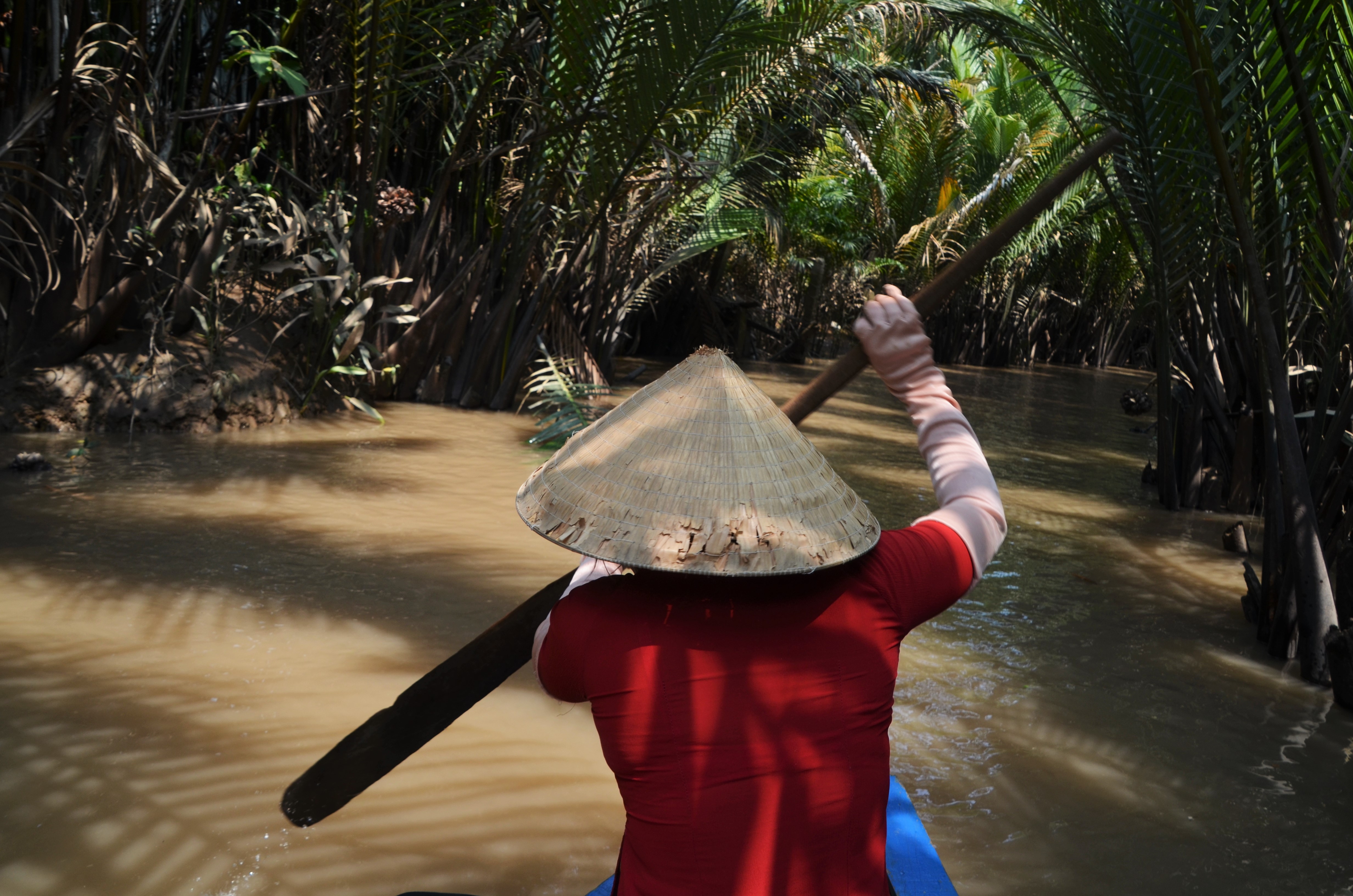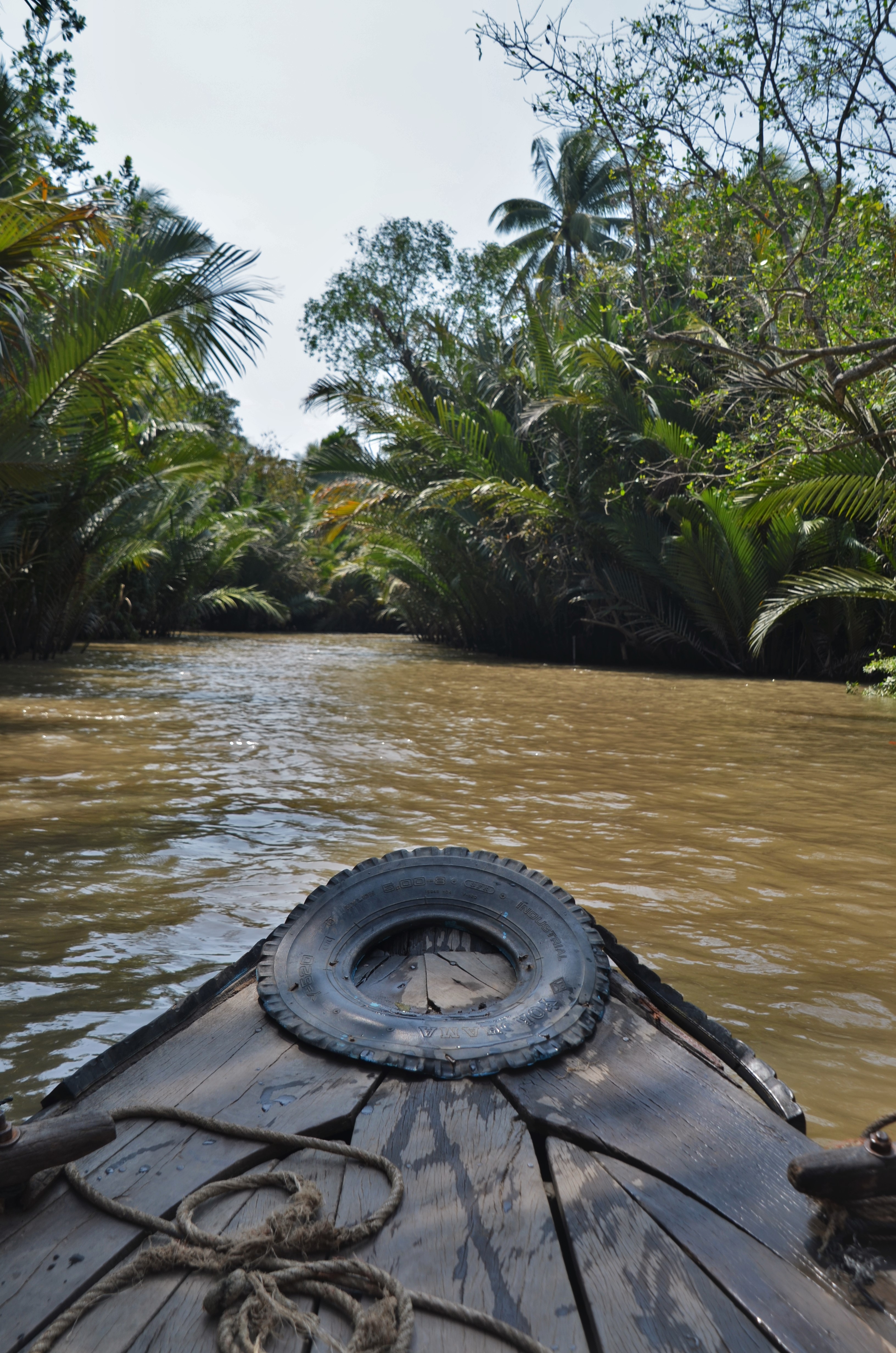 We decided to do a trip along the Mekong Delta, so we booked a two day one night tour. It wasn’t my favorite excursion but it was still interesting to say the least. On the first day we started on a medium sized boat and visited four islands. On the first island, we were seated in a 4 person raft with two locals to paddle our way through a small channel of water lined with coconut trees that formed an archway over the water. It was gorgeous even though it was packed with small boats doing the same thing.