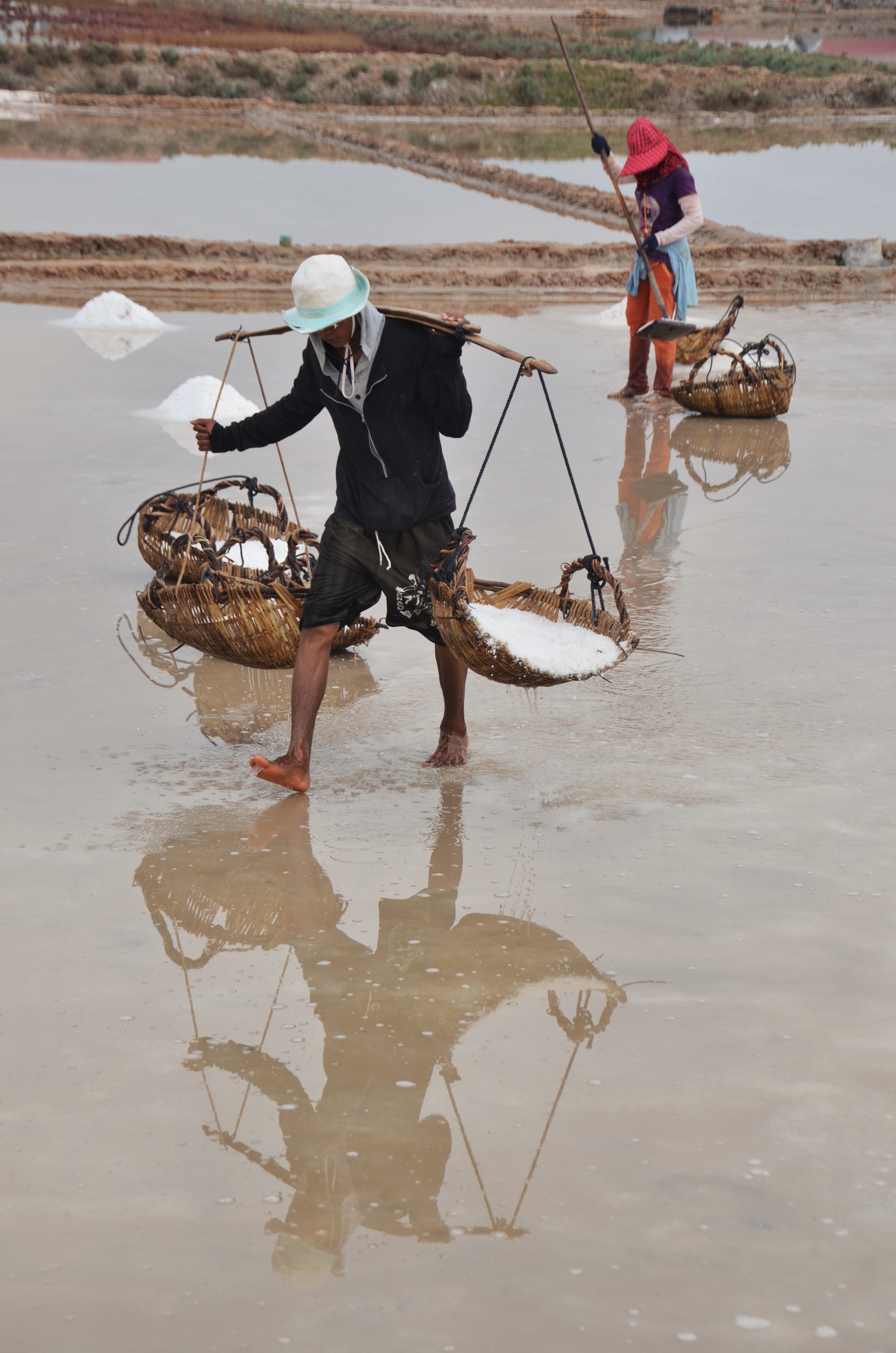 With only two nights and one day in Kampot, we had to do an all day tour to get everything in that we wanted. We hired a tuk tuk driver for the entire day and started at the salt farm. At the salt farm, they create shallow pools out of claylike mud to hold a few inches of seawater that has to be trucked in. After 5 days of drying, most of the salt can be scrapped into piles, and then hand carried to a storage shed.
