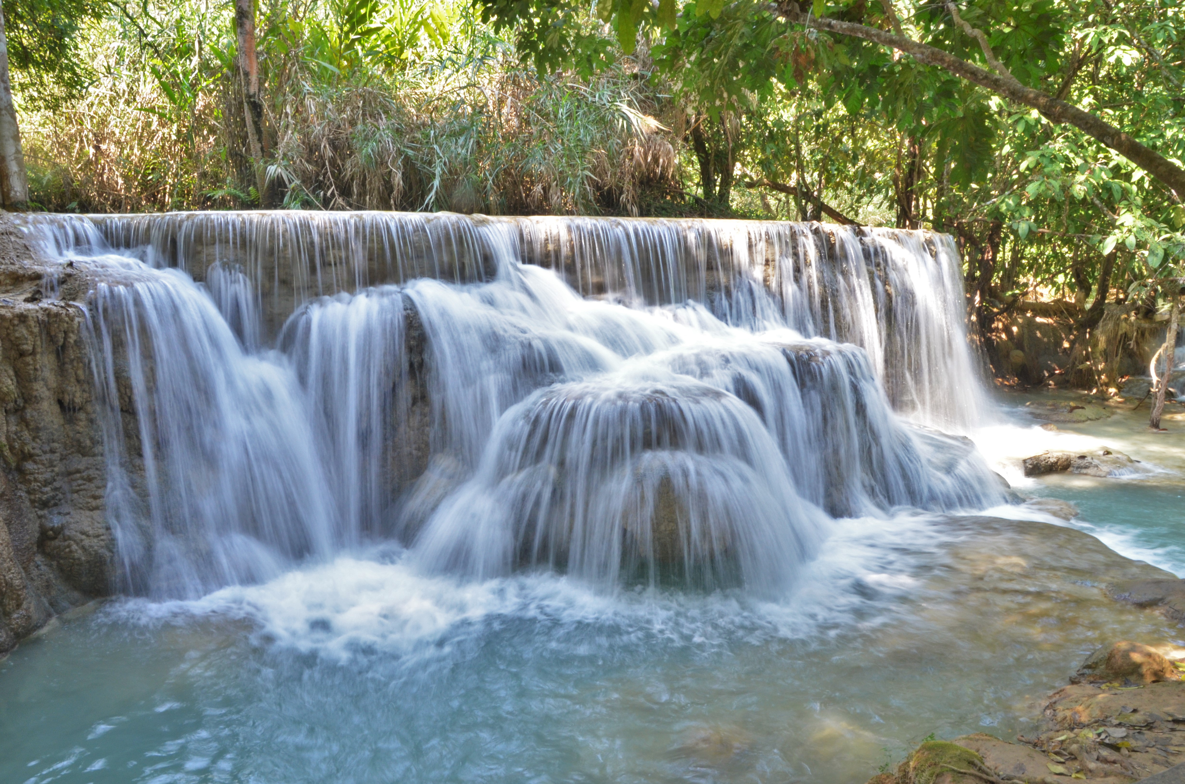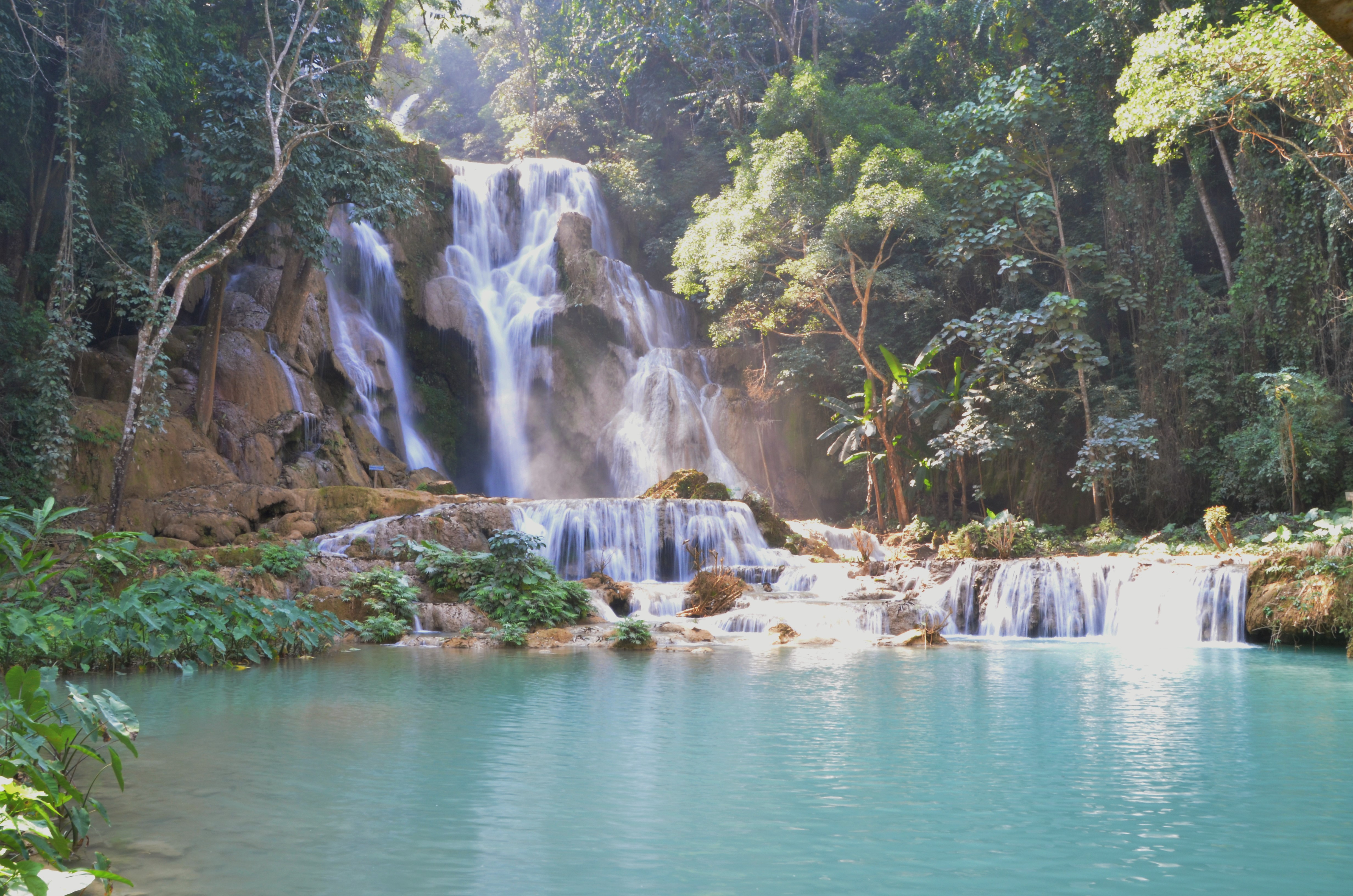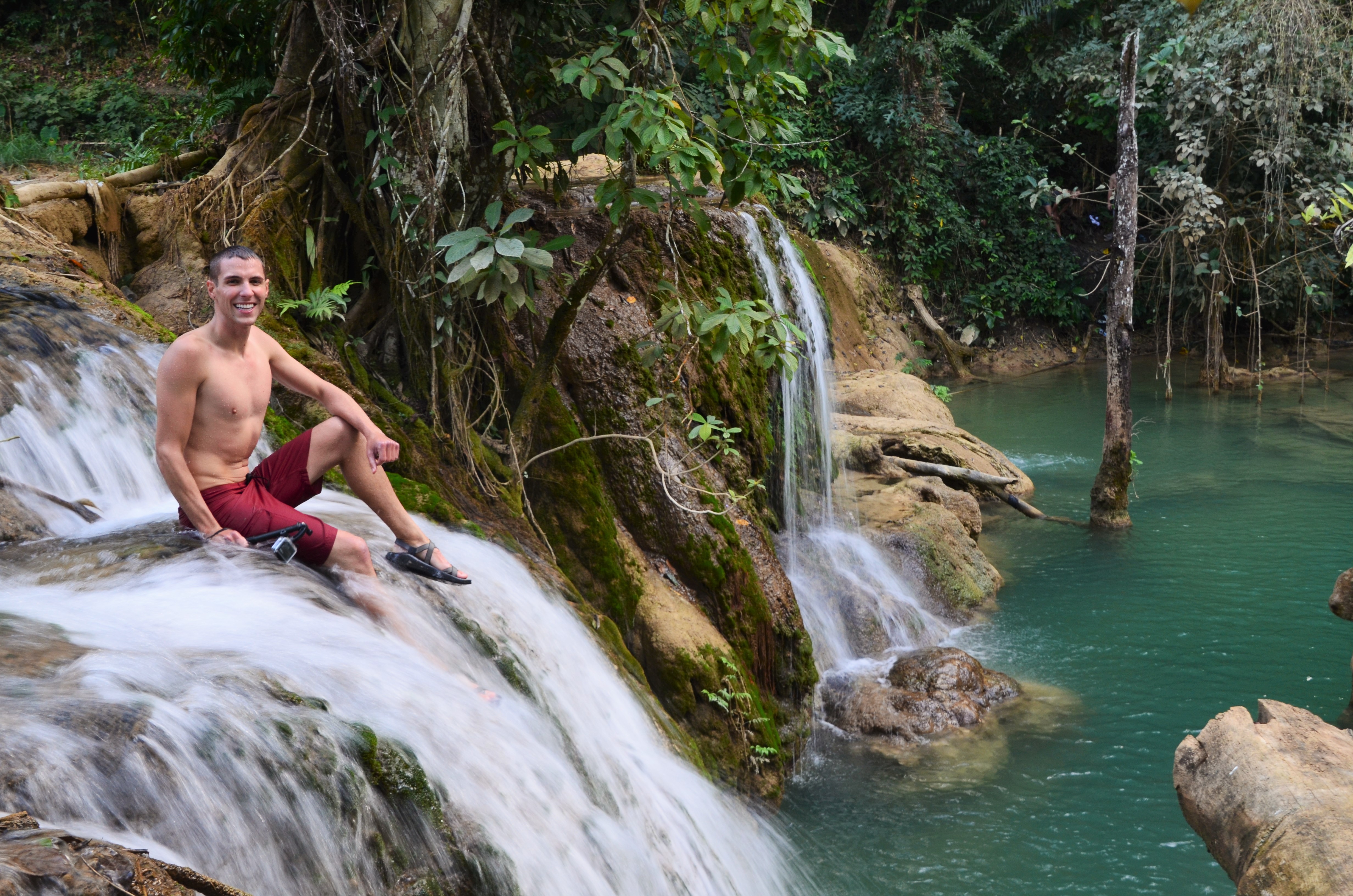 After a 40 minute tuk tuk ride out of the city and a $2 entrance fee, we entered Kuangsi Waterfall Park. I was in love at the first waterfall. Crystal clear, blue/green spring water rolled over countless natural infinity edges. The farther we went into the park, the more impressive the falls became. After several dozen medium sized falls and swimming pools, we found ourselves at the base of the most beautiful thing I have ever seen, Kuangsi Waterfall. I have seen some sights this year, but nothing compared to the 200 feet of enchanted travertine falls with dozens of infinity pools.