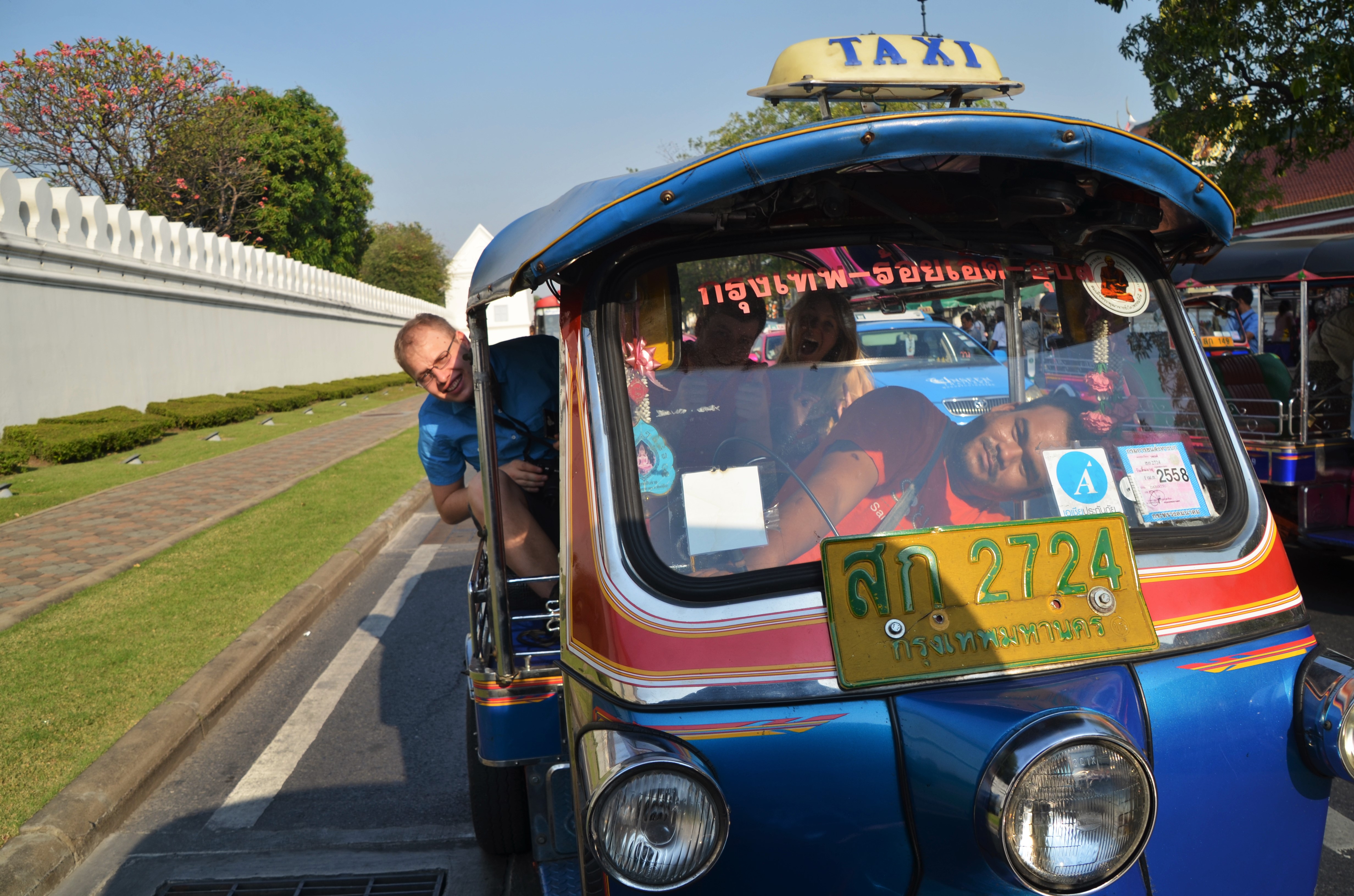 The next day we decided to make a quick tourist loop around town. We started at the Wat Pho Temple to see reclining Buddha. After seeing the main statue, we wandered around the temple grounds until we were all Buddhaed out, so we took a tuk tuk to the 32 meter high, Luang Pho To statue. Next stop was a clothing shop. The tuk tuk driver said they would get free gas from the clothing shop if they brought tourists there, so we complied. We walked in and were bombarded by workers offering to tailor us a suit. Who would have known half the group was going to order a suit by the time we left. The three of us that didn’t order one just got to take advantage of the free beer.