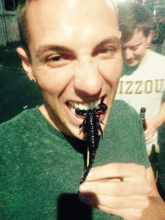 Since we got there after midnight, it was already full of drunken shenanigans. Food stalls, bars, street venders, and crowds lined the street as if it was one big street-long party. A vender walked by with fried scorpions on a stick and I had to try one. My mindset of this trip is try every crazy, weird, different food, or activity I can. When will I see a scorpion on a stick again!? I got one for a dollar and was pleasantly surprised. The spices and the crunch made a great combo for a strange treat. By the end of the night, half our group had gotten one, all with positive reviews.