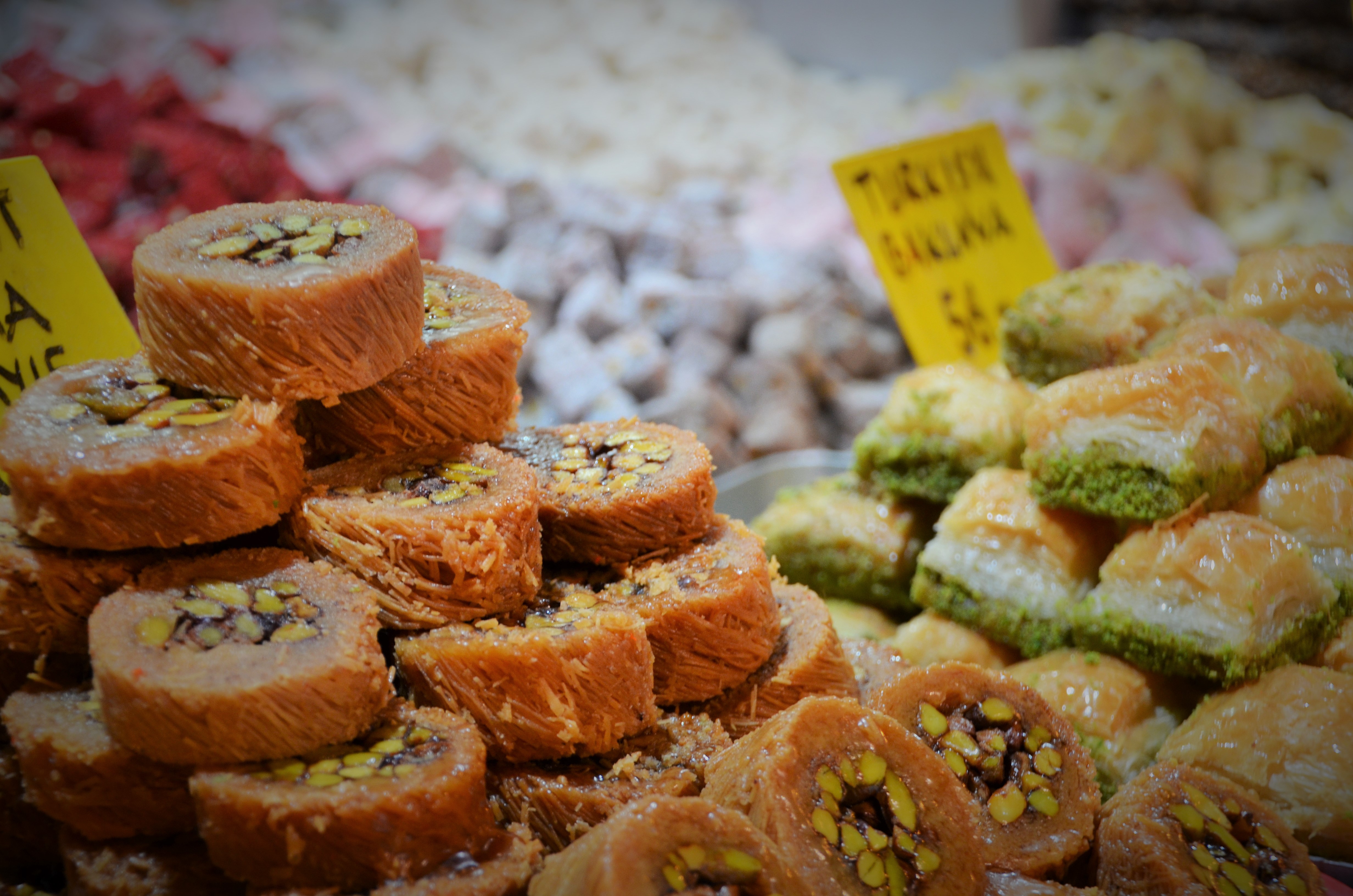 The main street was only a few blocks from our hostel and it is full of people all day. Lined with fresh mussel, chestnut, juice, baklava, and kebab venders, Istanbul had food available in all directions. Eating was one of the best things to do here and it was very inexpensive. My favorite thing to eat in Turkey is baklava which I had minimum of once a day. I also tried a local dessert called Kunefe which is a cheese filled dessert. If you know me, you know I like dessert. Add cheese to a dessert, and I’m in heaven. Another local dish I tried is gozleme which is somewhat like a small pizza which is topped with minced meat.